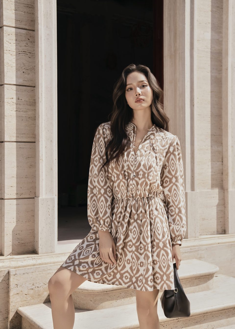 Soft Amber Bow Mini Dress
